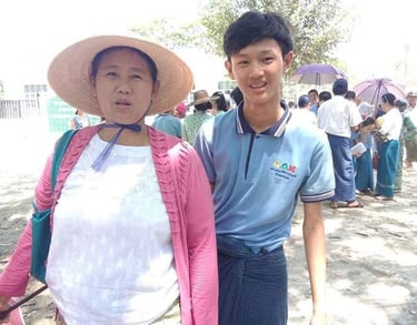 In 2018, I was a high school student in Myanmar. This picture was taken during my final exam. The woman in the picture is my lovely mother. I studied at Gant Gaw Myine Private High School in Kyaunggon and passed the matriculation exam in 2019.